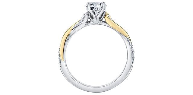 18 Karat White Gold, Yellow Gold Accent Canadian Diamond Engagement Ring. 0.70 Carat Center Diamond 0.84 Carat Total Diamond Weight.