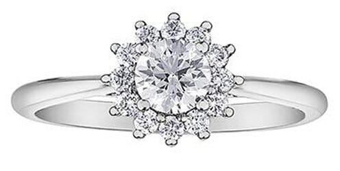 18 Karat White Gold Canadian Diamond Engagement Ring. 0.38 Carat Center Diamond 0.58 Carat Total Diamond Weight.