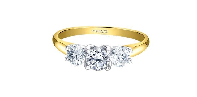 18 Karat Yellow Gold, White Gold Accent Canadian Diamond Engagement Ring. 0.37 Carat Center Diamond 0.75 Carat Total Diamond Weight.