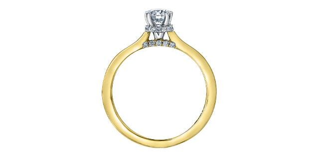 18 Karat Yellow Gold, White Gold Accent Canadian Diamond Engagement Ring. 0.30 Carat Center Diamond 0.38 Carat Total Diamond Weight.