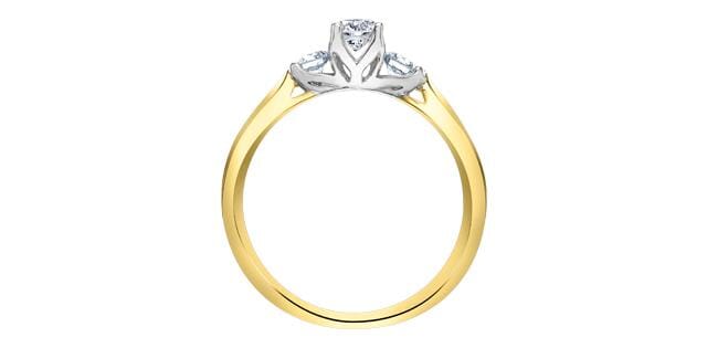 18 Karat Yellow Gold, White Gold Accent Canadian Diamond Engagement Ring. 0.24 Carat Center Diamond 0.50 Carat Total Diamond Weight.
