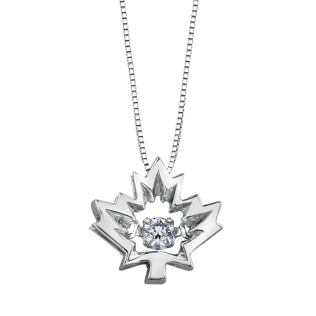 10 Karat White Gold Canadian Diamond "Maple Leaf"Pulse Pendant Necklace. 0.04 Carat Total Diamond Weight. This pendant comes with an 18 inch 10K white gold chain as shown. Alternate chain length, weight, or style options are available.