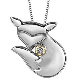 Sterling Silver, 10 Karat Yellow Gold Accent Canadian Diamond Fox Pendant Necklace. 0.03 Carat Total Diamond Weight. This pendant comes with an 18 inch sterling silver chain as shown. Alternate chain length, weight, or style options are available.