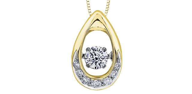 10 Karat Yellow Gold, White Gold Accent Canadian Diamond Pulse Pendant Necklace. 0.20 Carat Total Diamond Weight.
