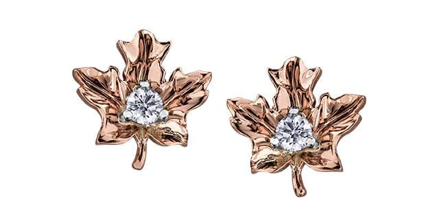 14 Karat Rose Gold, White Gold Accent Canadian Diamond Stud Earrings. 0.12 Carat Total Diamond Weight.