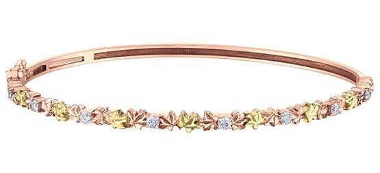 14 Karat Rose Gold, Yellow Gold Accent Canadian Diamond Bangle Bracelet. 0.32 Carat Total Diamond Weight.