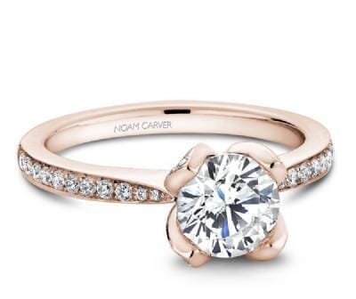 14 Karat Rose Gold Engagement Ring. Featuring A Signature Created Lab Grown Center Diamond And Earth Mined Accent Diamonds. 1.00 Carat Center Diamond 1.32 Carat Total Diamond Weight.