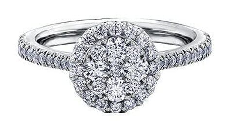 This elegant 14 Karat White Gold diamond engagement ring features a captivating round brilliant cut cluster design. The centre showcases a cluster of round diamonds forming a stunning halo effect, while diamond-adorned shoulders enhance its sparkling allure. Perfect for a memorable proposal or a special occasion, this piece combines classic style with modern brilliance, offering a timeless addition to your jewellery collection. If you wish to customize this ring with a different metal or design preference, please reach out to us for assistance.