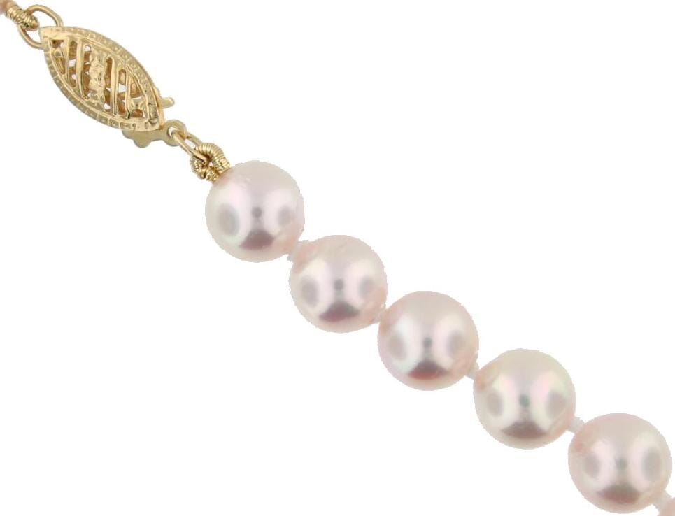 Cultured Freshwater Pearl Necklace. 6.0 - 6.5mm Pearls. 18 Inch Knotted Strand., 14 Karat Yellow Gold Clasp.