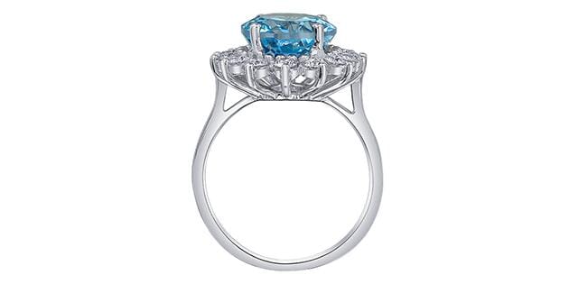 14 Karat White Gold Diamond, Blue Topaz, Canadian Diamond Ring. 0.84 Carat Total Diamond Weight.