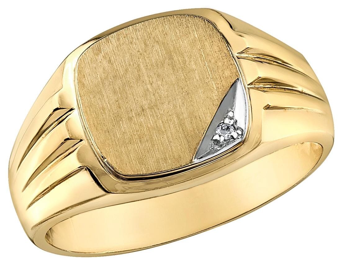 10 Karat Yellow Gold Diamond Mens Ring. 0.01 Carat Total Diamond Weight.