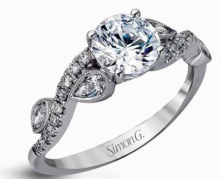 This stunning 18 Karat White Gold engagement ring from Simon G. showcases a beautifully crafted Canadian Diamond. Its intricate round brilliant cut center stone is accentuated by sparkling diamond shoulders, creating a harmonious blend of elegance and sparkle. The delicate design is perfect for those seeking a timeless piece with a touch of modern sophistication. This ring can be customized to your preference, whether you wish to select a different gold colour or adjust the diamond details.