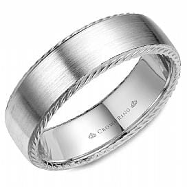 White Gold Mens Band. With Brushed Finish And Milgrained Edge