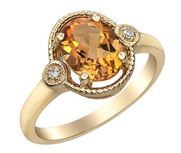 10 Karat Yellow Gold Citrine, Diamond Ring. 0.02 Carat Total Diamond Weight.