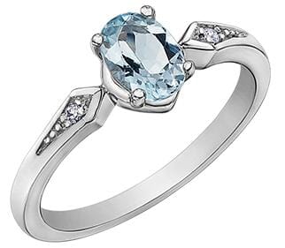 10 Karat White Gold Aquamarine, Diamond Ring. 0.02 Carat Total Diamond Weight.