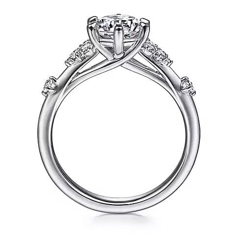 This elegant 14 Karat White Gold engagement ring from Gabriel & Co. features our Signature brilliant cut lab-grown diamond at its centre, surrounded by shimmering earth-mined accent diamonds on its shoulders. The refined design highlights the centre stone's brilliance, while the diamond accents add a touch of opulence. A perfect choice for those seeking a timeless yet luxurious piece, this ring is ideal for a cherished proposal or special occasion. Customizable to your preferences, it can be tailored to suit your desired diamond shape, size, or metal type, making it a truly personalized symbol of love.