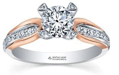 18 Karat White Gold, Rose Gold Accent Canadian Diamond Engagement Ring. 0.60 Carat Center Diamond 0.90 Carat Total Diamond Weight.