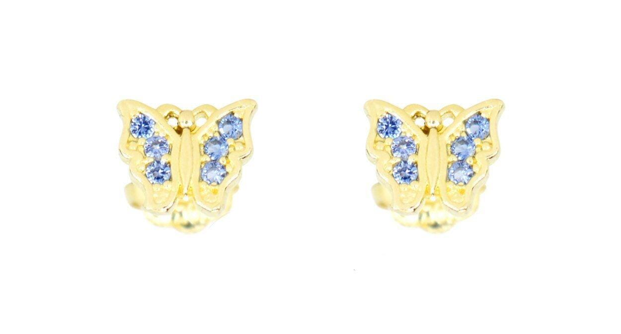 Yellow Gold Cubic Zirconia, March Butterfly Screwback Earrings.