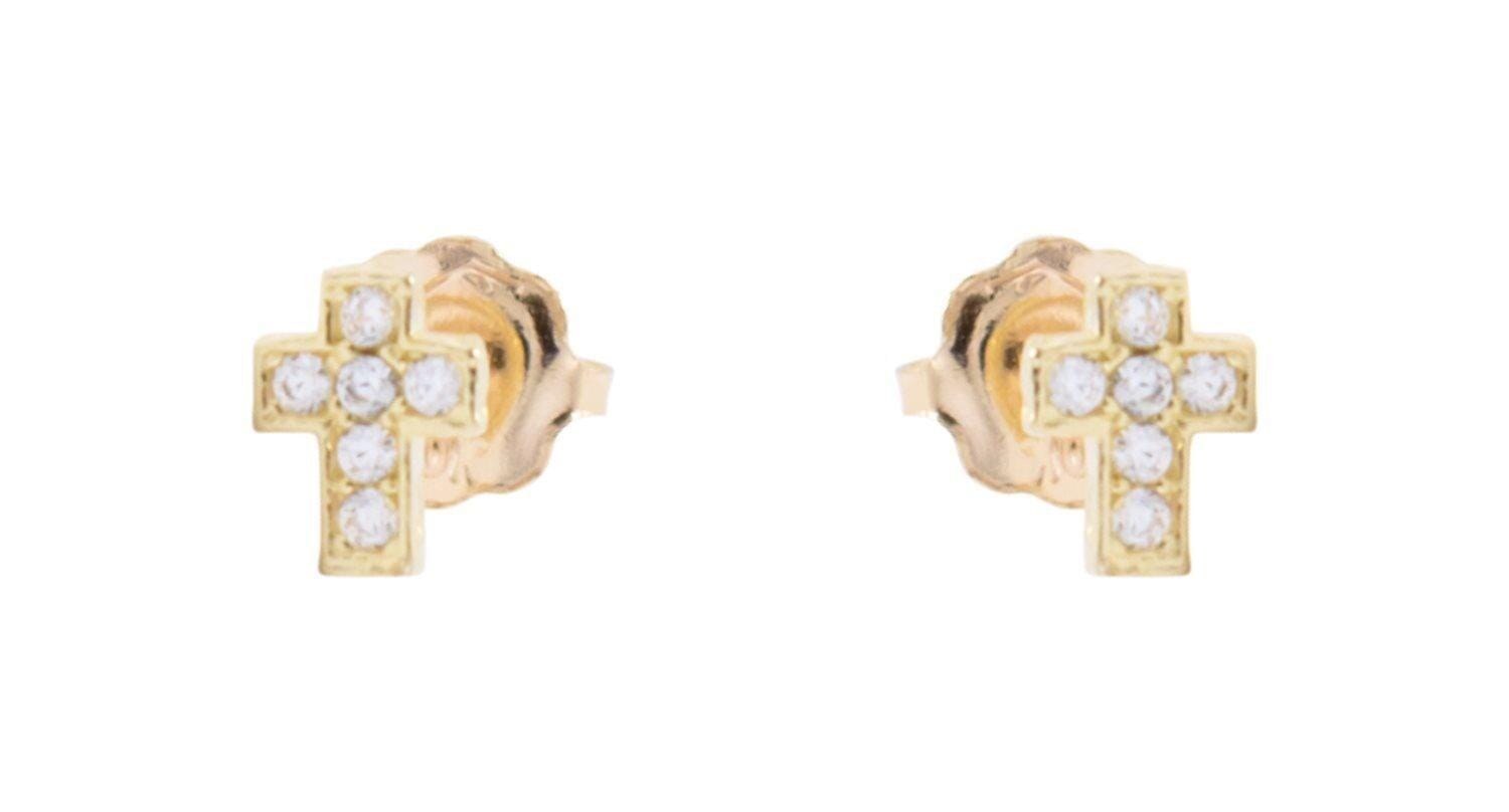 Yellow Gold Cubic Zirconia Cross Screwback Earrings.