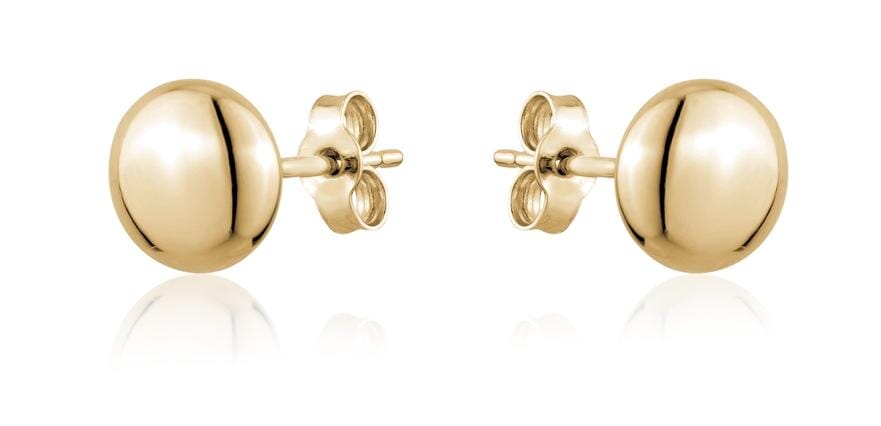 Yellow Gold Flat Round Puff Stud Earrings.