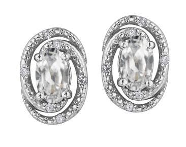 Sterling Silver White Topaz, Diamond Stud Earrings.0.036 Carat Total Diamond Weight.