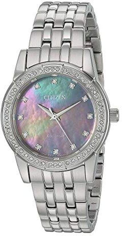 Citizen Ladies Silver Tone Swarovski Crystal, 50m 5ATM Water Resistant, Mother of Pearl Dial Eco-Drive Watch - Crystal Accents