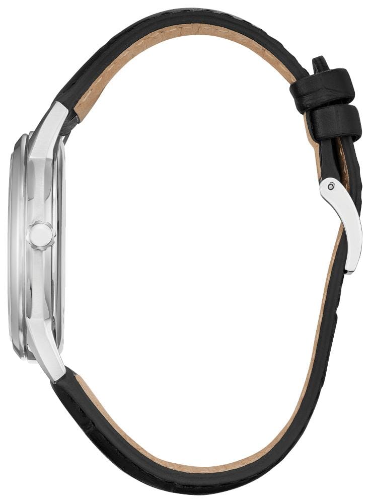 Citizen Gents Leather Strap Date Only Eco-Drive Watch - Classic lines and a simple silhouette define the newest addition to the Classic collection. This vintage-inspired timepiece features a silver-tone stainless steel case, a striking blue 3-hand dial with a date function, and a rich black leather strap with buckle closure. Sustainably powered by any light with Eco-Drive technology and never needs a battery.