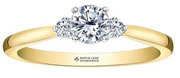18 Karat Yellow Gold, White Gold Accent Canadian Diamond Engagement Ring. 0.40 Carat Center Diamond 0.50 Carat Total Diamond Weight.