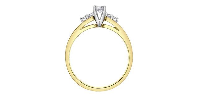 10 Karat Yellow Gold, White Gold Accent Canadian Diamond Engagement Ring. 0.08 Carat Center Diamond 0.13 Carat Total Diamond Weight.