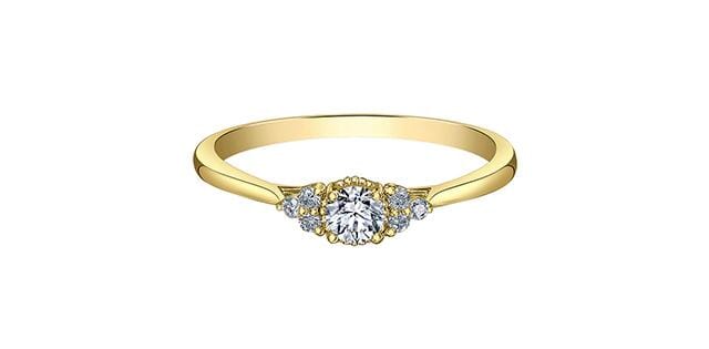 10 Karat Yellow Gold Canadian Diamond Engagement Ring. 0.18 Carat Center Diamond 0.25 Carat Total Diamond Weight.