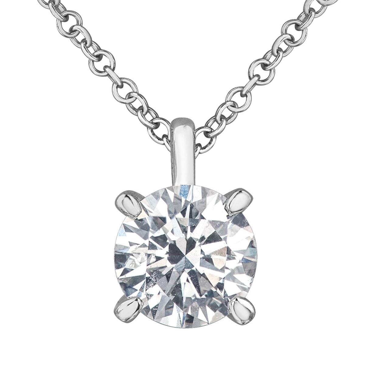 14 Karat White Gold Signature Lab Grown Diamond Solitaire Pendant Necklace. 1.50 Carat Total Diamond Weight. This pendant comes with an 18 inch 14K white gold chain as shown. Alternate chain length, weight, or style options are available.