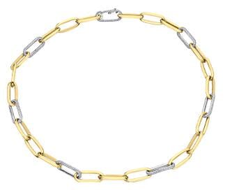 10 Karat Yellow Gold, White Gold Accent Diamond Paperclip Pendant Necklace. 5.68 Carat Total Diamond Weight.