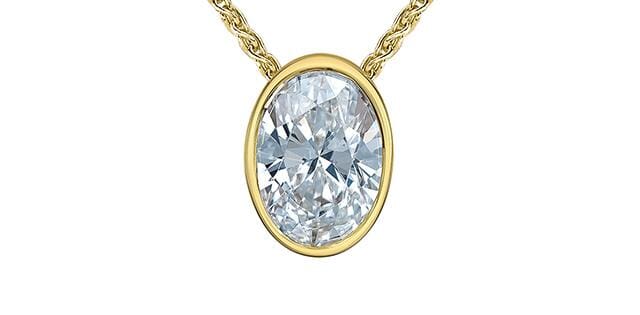 14 Karat Yellow Gold Signature Lab Grown Diamond Solitaire Pendant Necklace. 0.70 Carat Total Diamond Weight.
