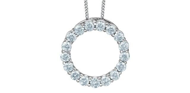10 Karat White Gold Signature Lab Grown Diamond Circle Pendant Necklace. 0.50 Carat Total Diamond Weight. This pendant comes with an 18 inch 10K white gold chain as shown. Alternate chain length, weight, or style options are available.