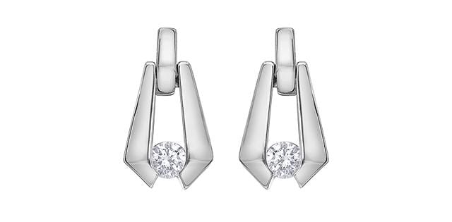 10 Karat White Gold Diamond Drop Earrings.0.16 Carat Total Diamond Weight.