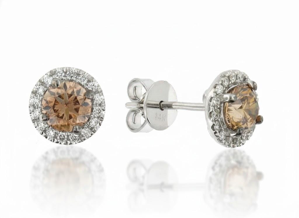 White Gold Natural Coffee Coloured Canadian Diamond Stud Earrings
