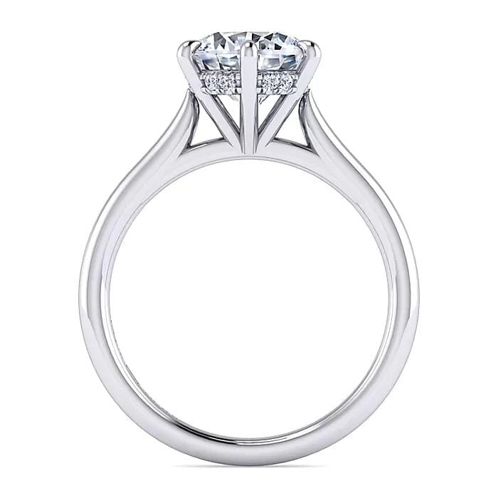 This classic 14 Karat White Gold engagement ring showcases a Signature brilliant cut lab-grown diamond. Its minimalist design with plain shoulders emphasizes the brilliance of the centre stone, held securely in place by six elegant prongs. The sleek band allows the diamond to take centre stage, making this ring a timeless choice for a special proposal. Customizable to your preference, this piece offers the option to adjust diamond shape, size, or metal type for a truly personalized touch, all backed by our One Year Satisfaction Guarantee for your complete peace of mind.